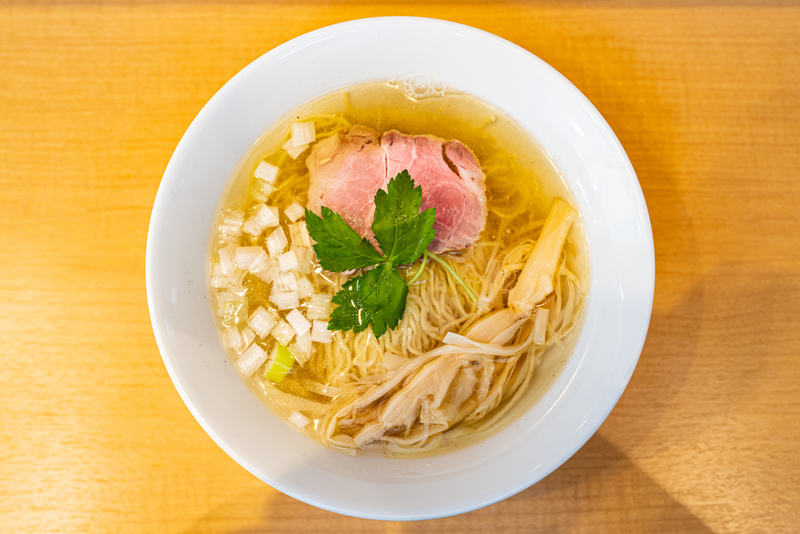 メニューを見るとラーメンは2種類。「佐渡産焼あごだし塩麺」と「淡麗とりだし塩麺」です。塩ラーメンだけとは潔い!迷ったんですが店員さんのイチ押しは「佐渡産焼あごだし塩麺」とのことだったので、そちらをオーダーしました(どうせ両方食べることになるし)。