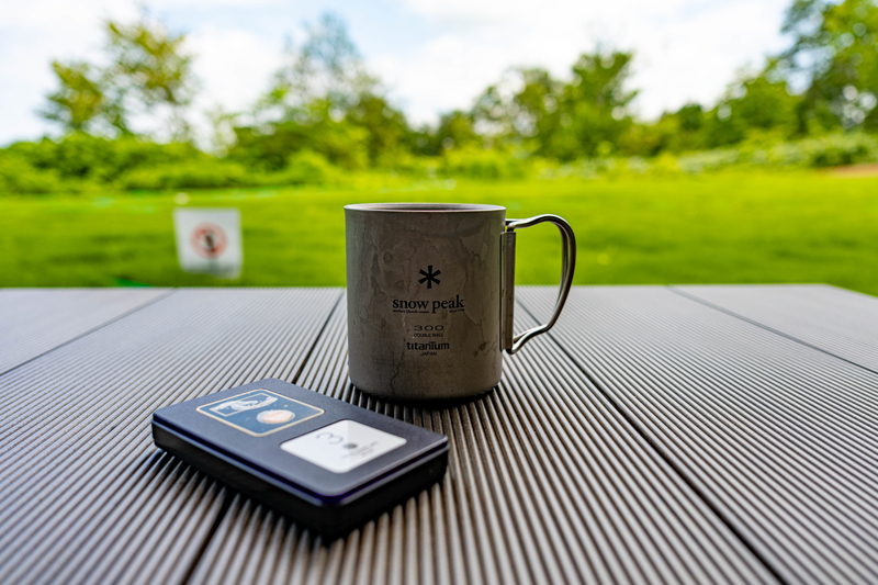 水のコップもSnow Peak製です。保温機能がないものでしたが、最後まで冷え冷えでした。