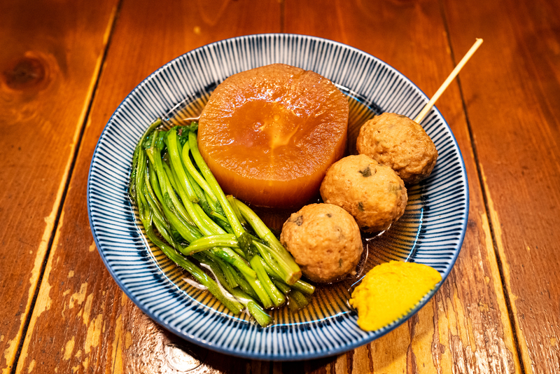 早速おでんをオーダーします。定番の大根は染み染み系の飴色!味も絶品です。つくねはまぁまぁ。おでんネタに宮城名物の「せり」があったのにはビックリ。つい先日、TVで仙台にある「せり鍋」の有名店が紹介されていて、食べてみたいと思っていたんですよね。味は…うん、まぁ、こういう感じかな?(不味くはない)。いつか本場仙台に食べに行きたいです。