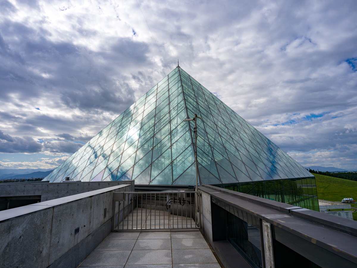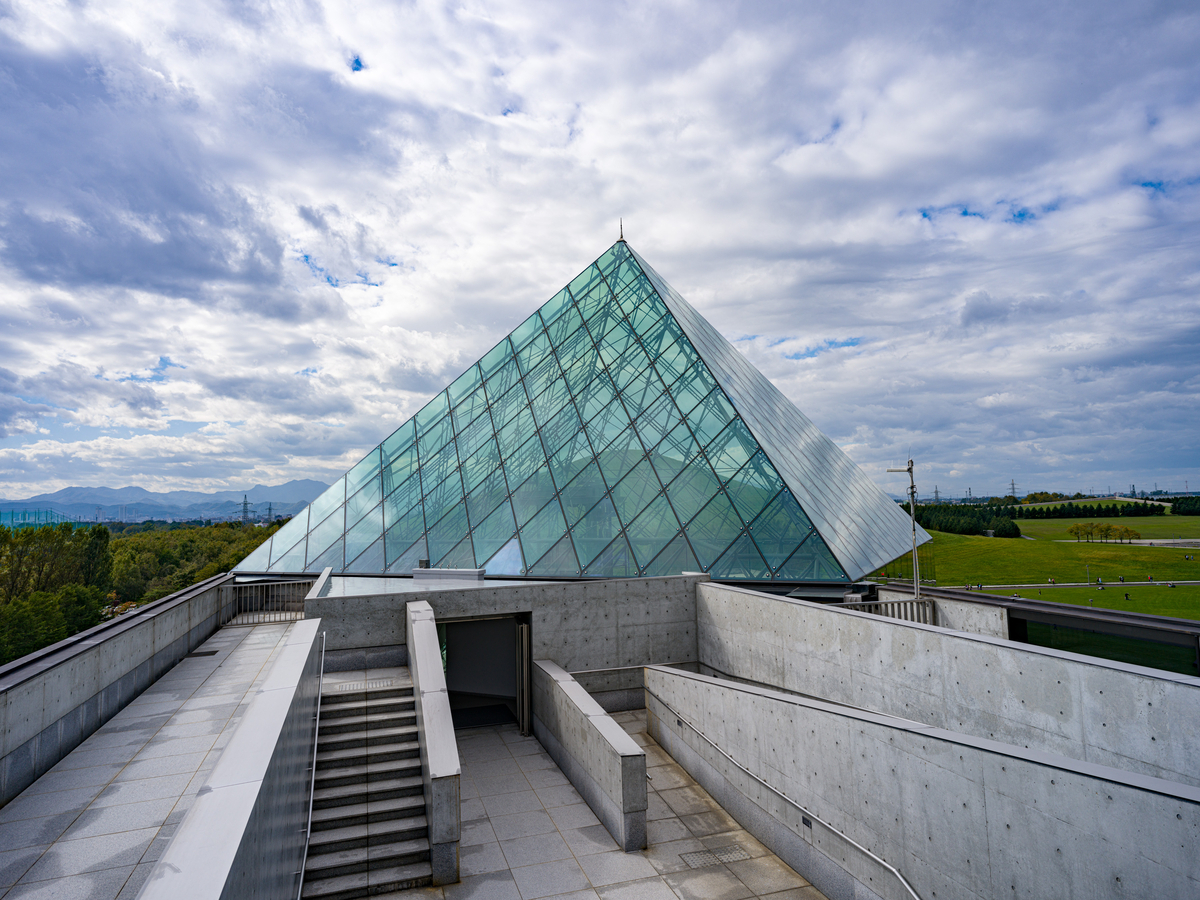 ルーブル美術館前にも「ガラスのピラミッド」がありますが、そちらが1989年完成でこのピラミッドは2003年完成なので、ルーブルの方が先ですね。ルーブルの方はI.M.ペイという建築家が設計しているんですが、イサム・ノグチとは友人関係にあり、モエレ沼のピラミッドはI.M.ペイへのオマージュという扱いになっているようです。