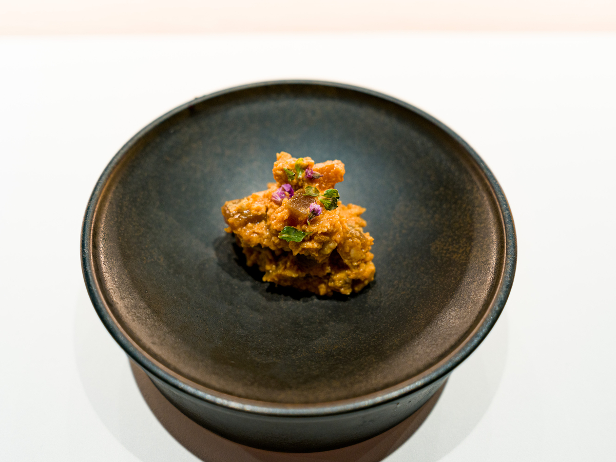 あん肝と奈良漬にした西瓜の和え物