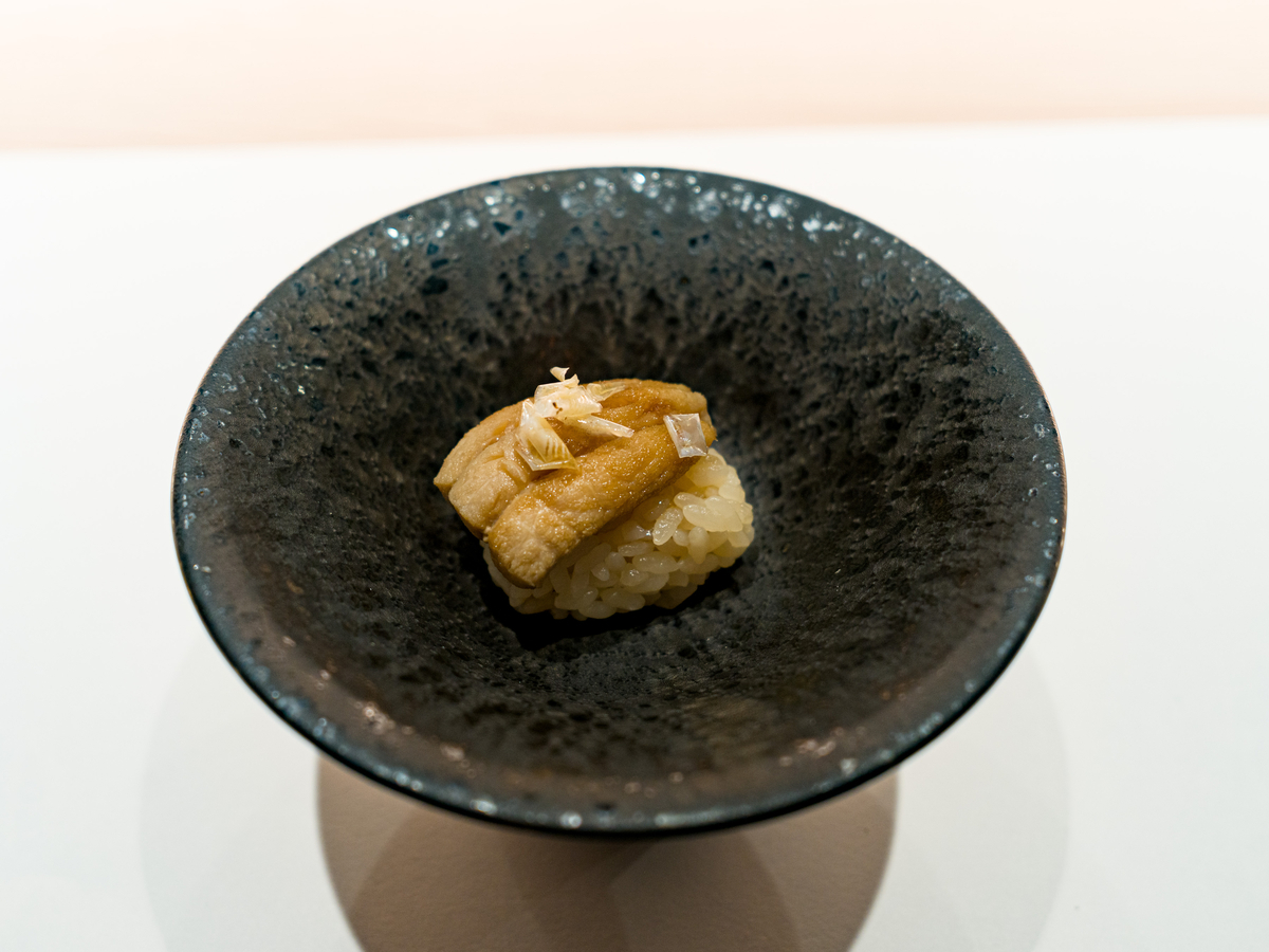 一品めから手の込んだアテが出てきます。神経締めは近年トレンドっぽいですが、身がプリプリしていて良いですね。