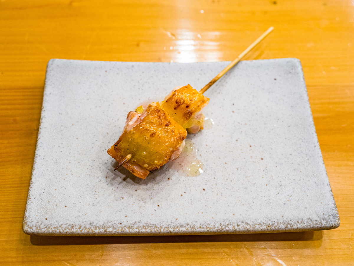 串ラスト。ここでしっかりした食感、締まった肉感の「内もも肉」が来ました。〆にちょうど良い感じ。